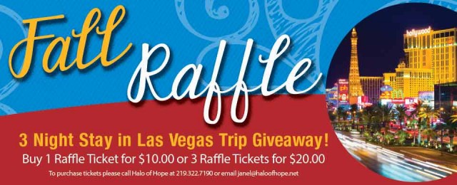The Halo-Ween Raffle is On! Grand Prize donated by Horseshoe Casino Hammond and Caesars Entertainment. The drawing date has been moved to December 2, 2013, and will serve as our Fall Raffle. Winner will be announced on the Halo of Hope Facebook Page, Website and notified by the Foundation. Remember ALL proceeds benefit kids with cancer!